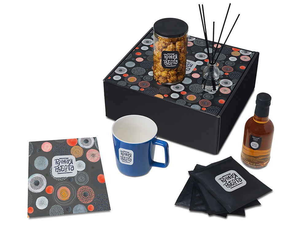 Подарочный набор Re:y. Treat с кружкой, сиропом и попкорном с логотипом компании - отличный способ заявить вашу корпоративную идентичность.