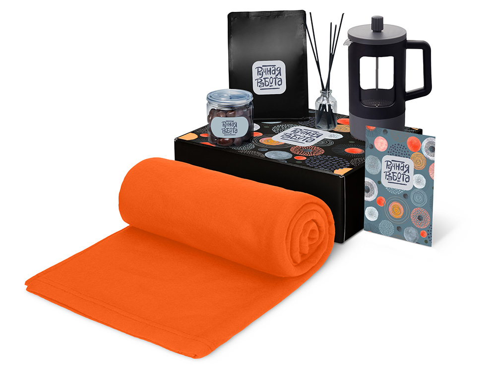 Подарочный набор Re:y. Vive с пледом, френч-прессом и кофе с логотипом компании - отличный способ заявить вашу корпоративную идентичность.
