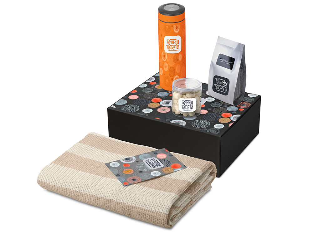 Подарочный набор Re:y. Warm с пледом, термосом и чаем с логотипом компании - отличный способ заявить вашу корпоративную идентичность.