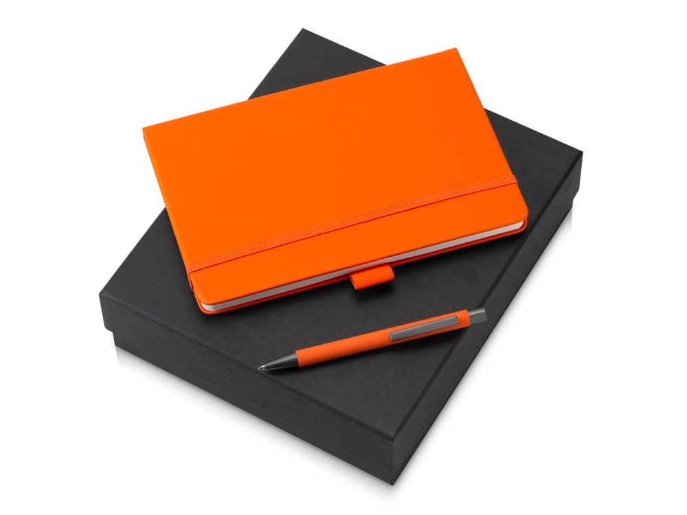 Главная ->Корпоративные подарки и рекламные сувениры на складе -> Ежедневники для работы -> Блокноты -> Подарочный набор Vision Pro soft-touch с ручкой и блокнотом А5, оранжевый