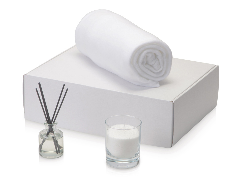 Подарочный набор White light 2.0 с пледом, диффузором, насыпной свечой с логотипом компании - отличный способ заявить вашу корпоративную идентичность.