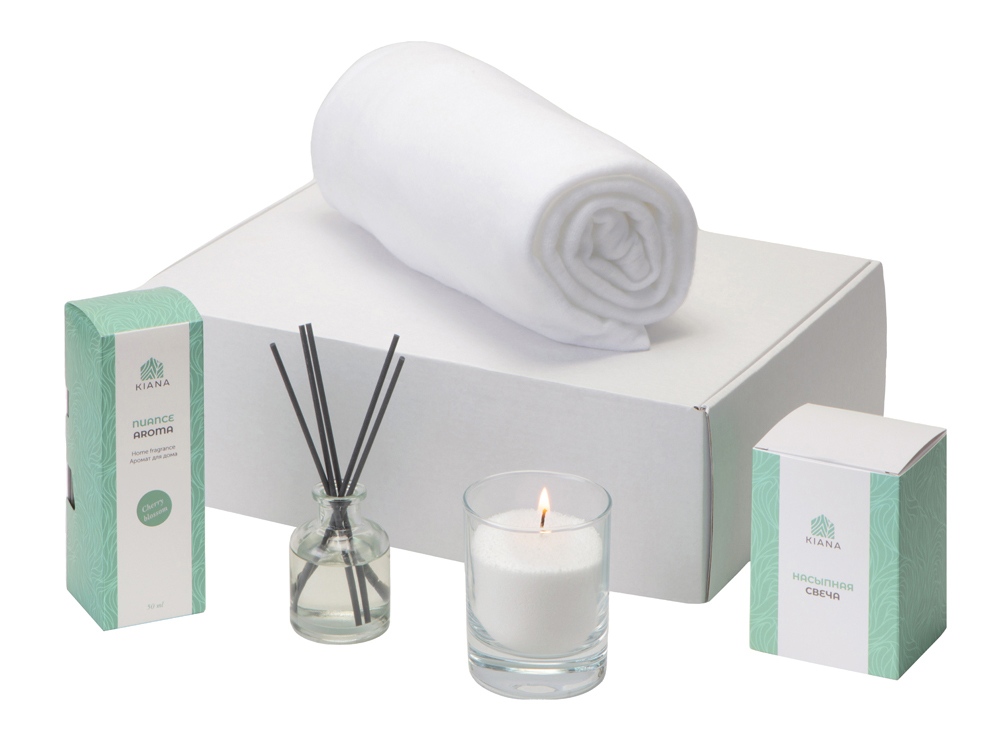 Главная ->Корпоративные подарки и рекламные сувениры на складе -> Наборы подарочные -> Подарочные наборы -> Подарочный набор White light 2.0 с пледом, диффузором, насыпной свечой