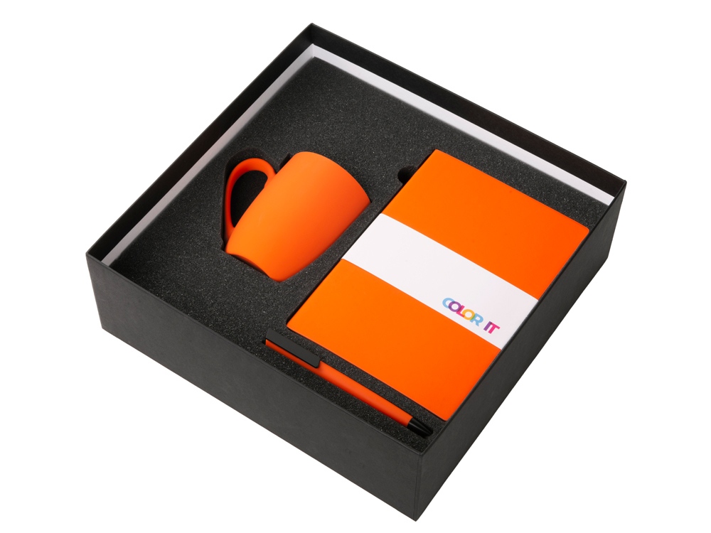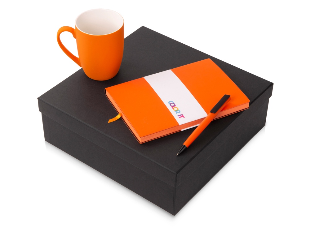 Подарочный набор c блокнотом C1, ручкой и кружкой, оранжевый с логотипом компании - отличный способ заявить вашу корпоративную идентичность.