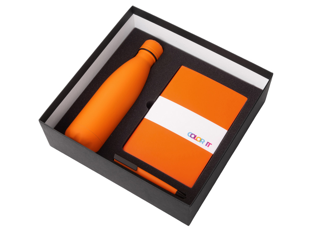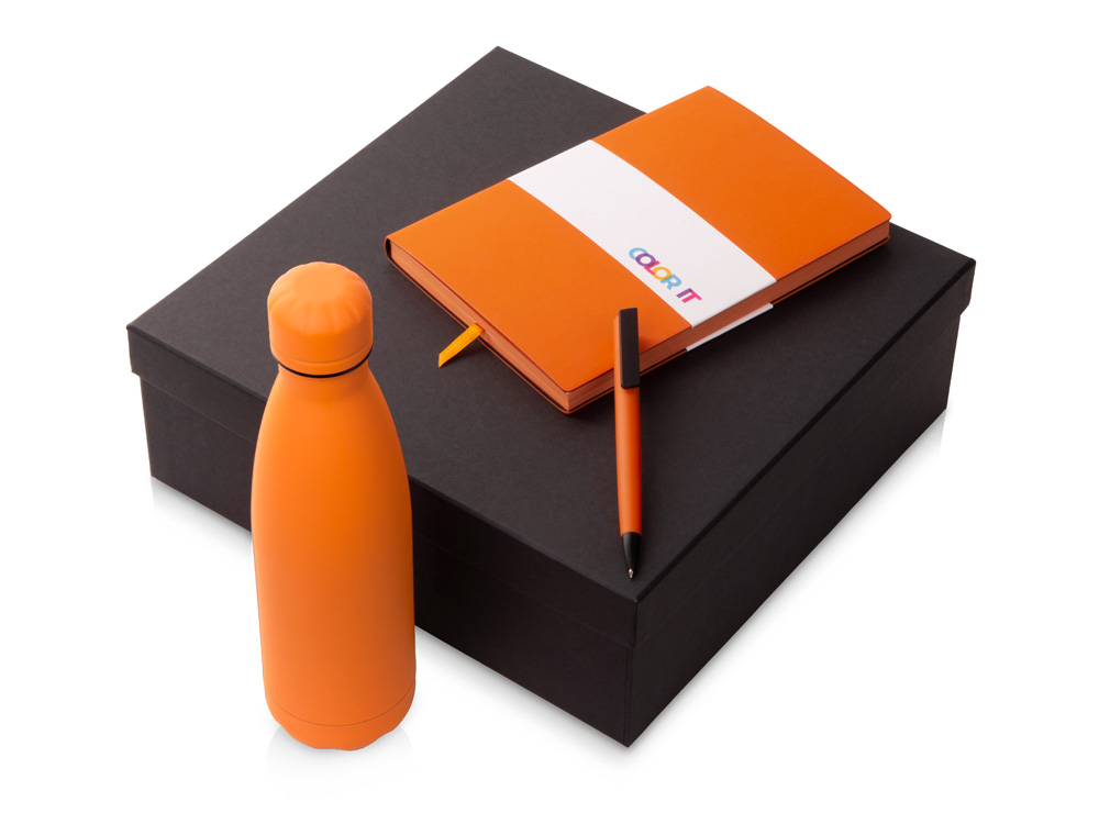 Подарочный набор c блокнотом C1, ручкой и термобутылкой, оранжевый с логотипом компании - отличный способ заявить вашу корпоративную идентичность.
