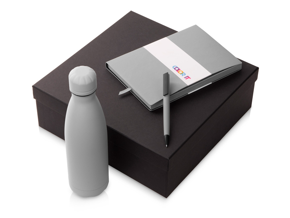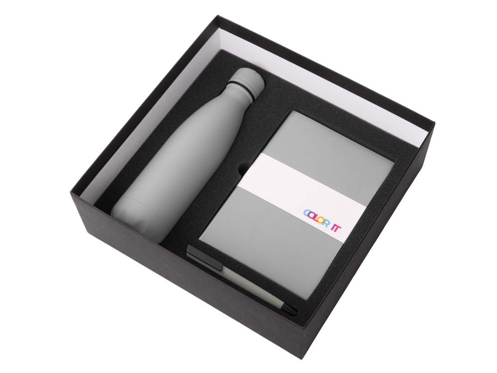 Подарочный набор c блокнотом C1, ручкой и термобутылкой, серый с логотипом компании - отличный способ заявить вашу корпоративную идентичность.