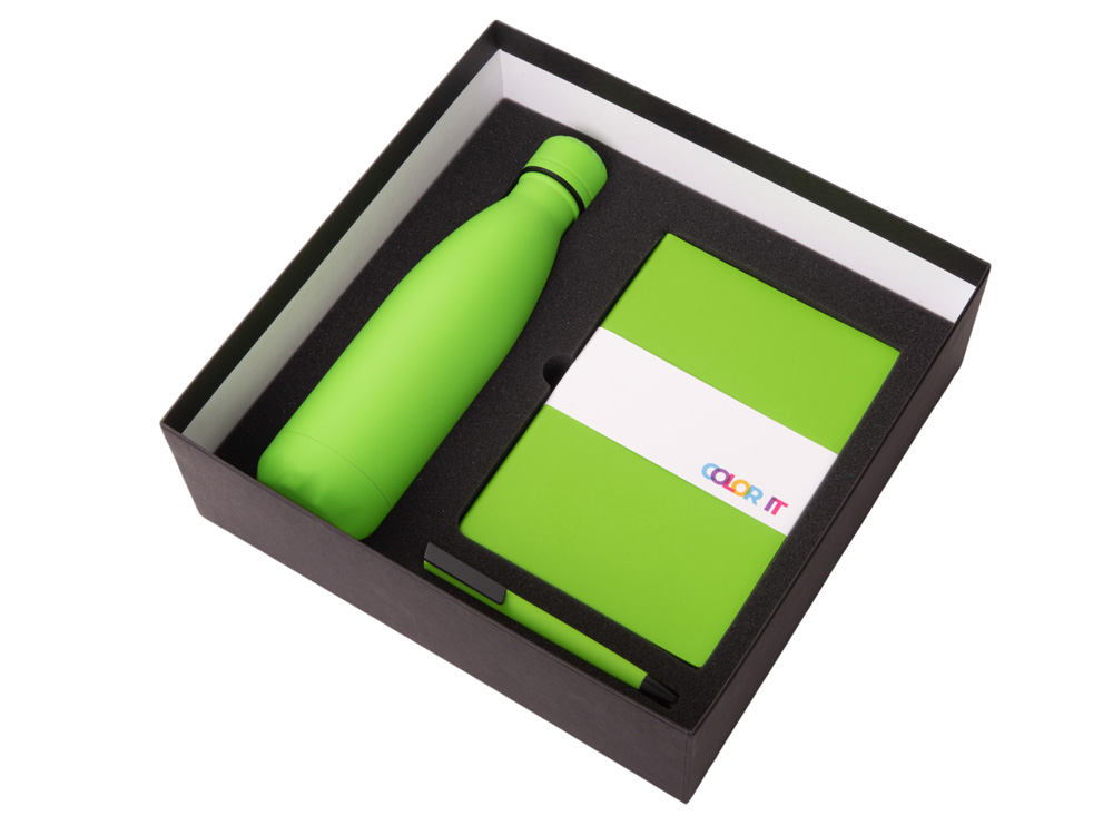 Подарочный набор c блокнотом C1, ручкой и термобутылкой, зеленое яблоко с логотипом компании - отличный способ заявить вашу корпоративную идентичность.