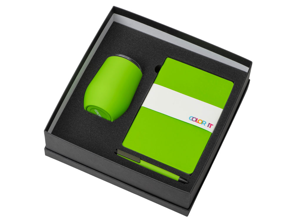 Подарочный набор c блокнотом C1, ручкой и термокружкой, зеленое яблоко с логотипом компании - отличный способ заявить вашу корпоративную идентичность.