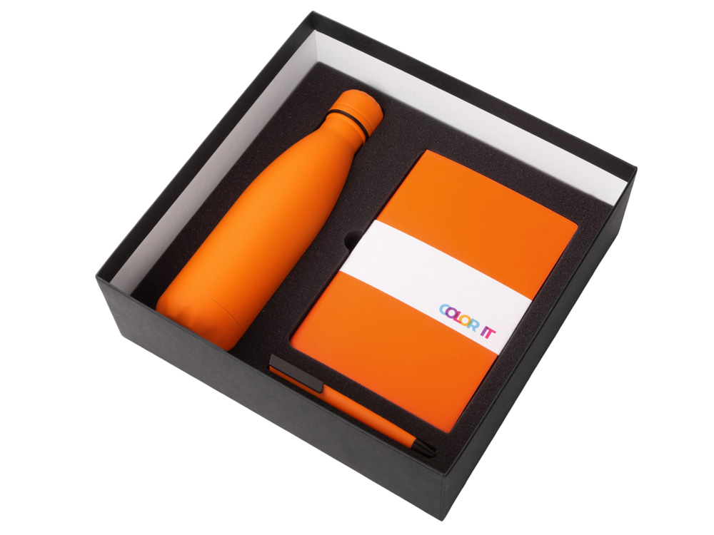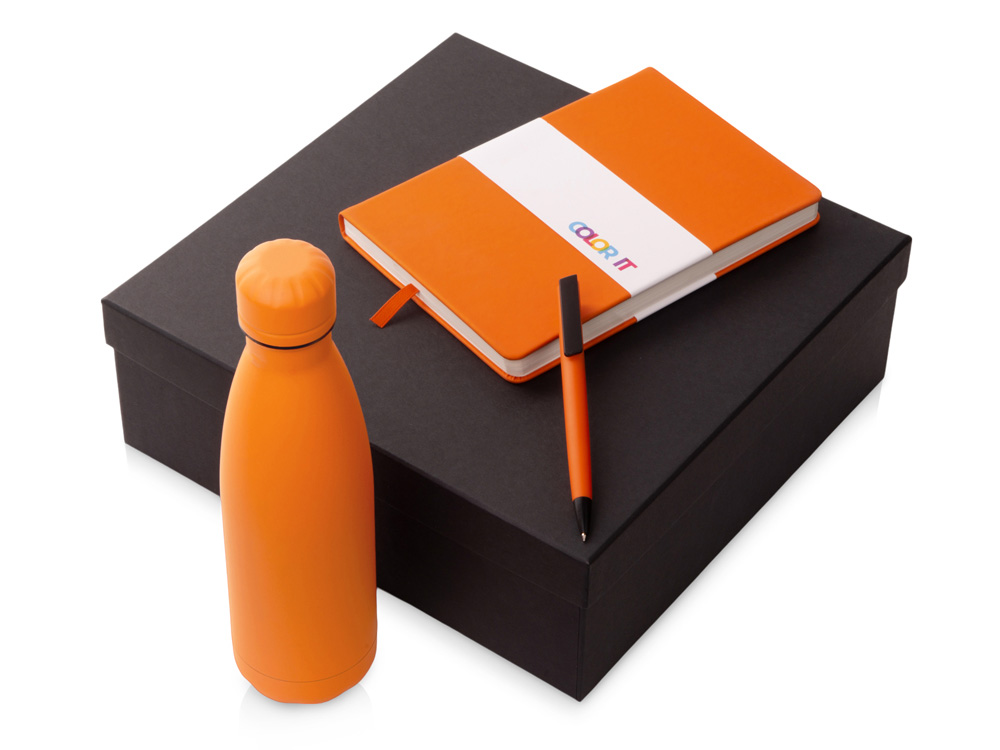 Подарочный набор c блокнотом C2, ручкой и термобутылкой, оранжевый с логотипом компании - отличный способ заявить вашу корпоративную идентичность.