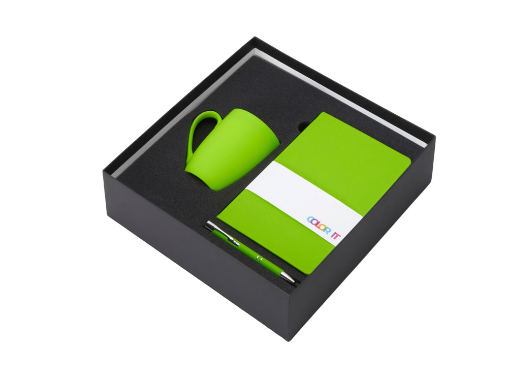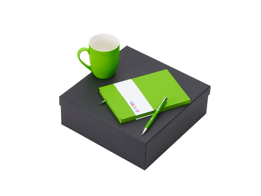 Подарочный набор с блокнотом С1, металлической ручкой и кружкой, зеленое яблоко с логотипом компании - отличный способ заявить вашу корпоративную идентичность.
