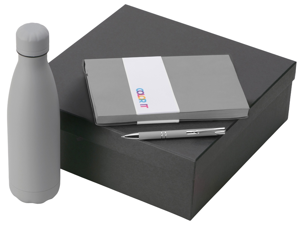 Подарочный набор с блокнотом С1, металлической ручкой и термобутылкой, серый