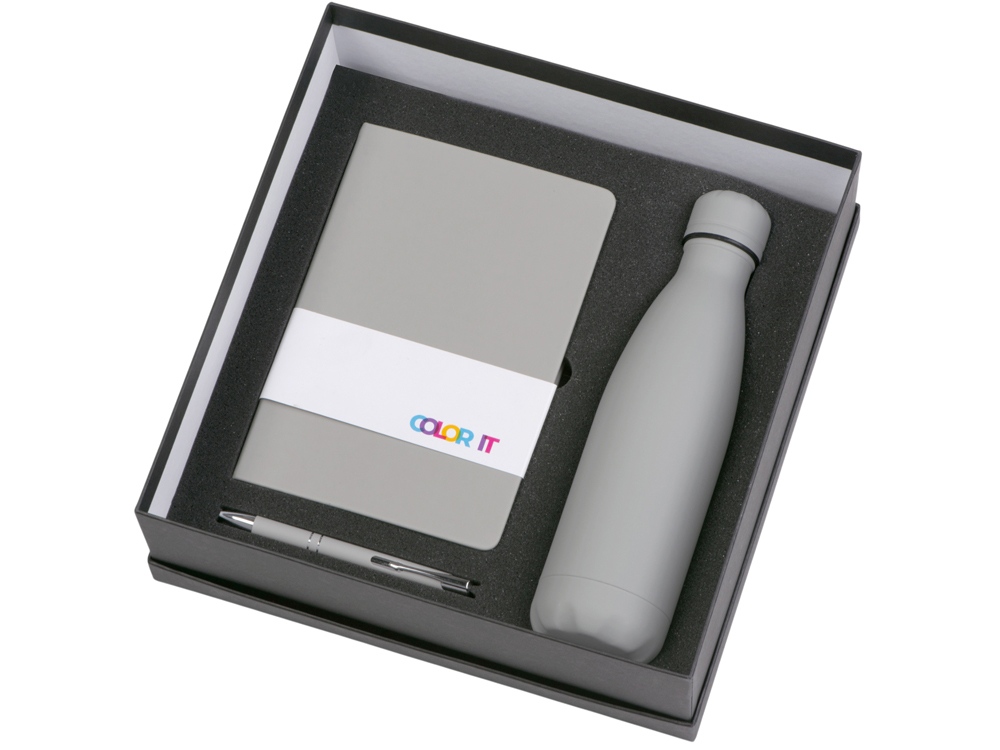 Подарочный набор с блокнотом С1, металлической ручкой и термобутылкой, серый с логотипом компании - отличный способ заявить вашу корпоративную идентичность.