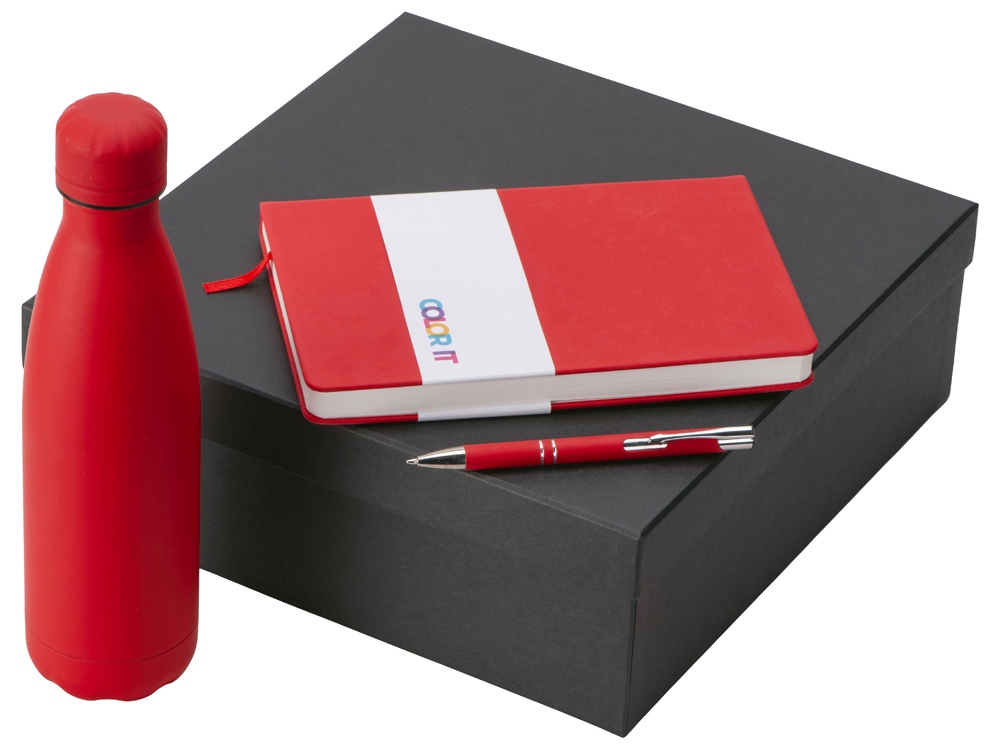 Подарочный набор с блокнотом С2, металлической ручкой и термобутылкой, красный с логотипом компании - отличный способ заявить вашу корпоративную идентичность.