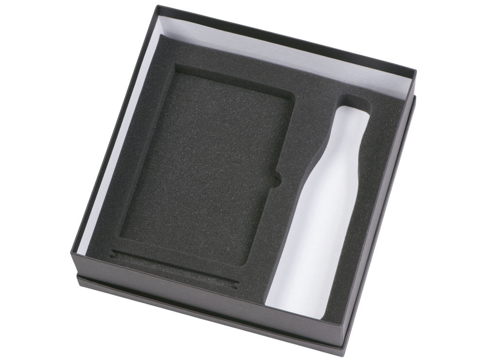 Материал: блокнот - искусственная кожа с покрытием софт-тач, ручка - алюминий с покрытием софт-тач, термобутылка - нержавеющая cталь с покрытием софт-тач, коробка - картон