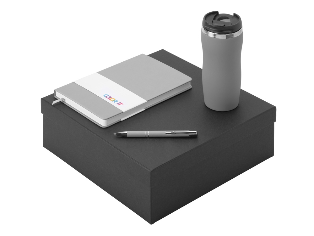 Подарочный набор с блокнотом С2, металлической ручкой и термокружкой, серый с логотипом компании - отличный способ заявить вашу корпоративную идентичность.
