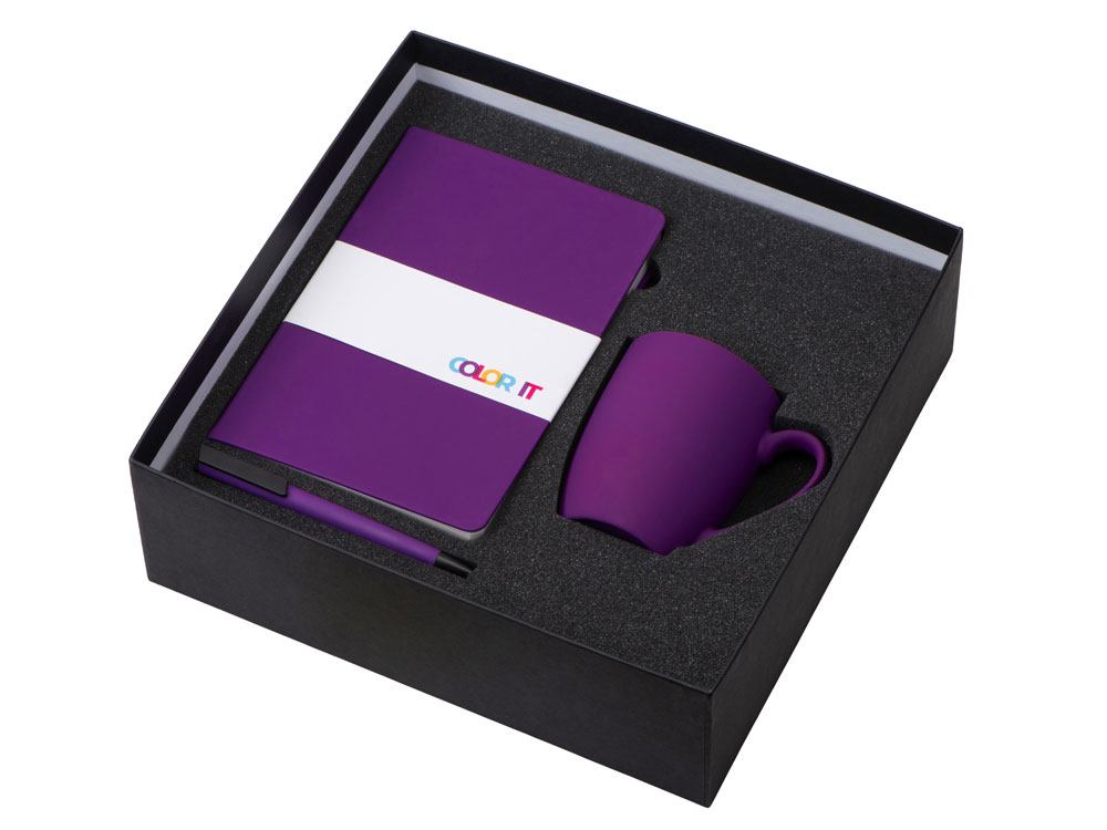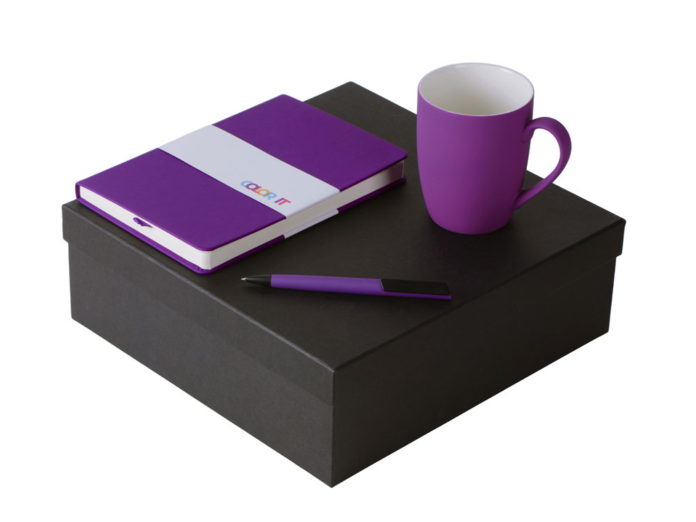 Подарочный набор с блокнотом С2, пластиковой ручкой и кружкой, фиолетовый с логотипом компании - отличный способ заявить вашу корпоративную идентичность.