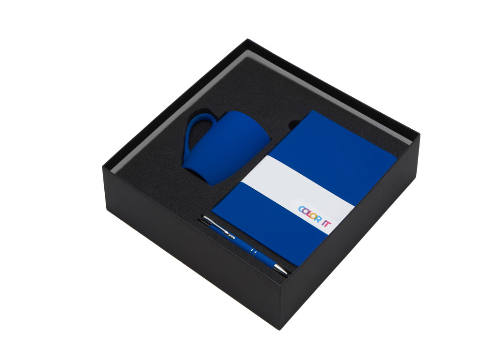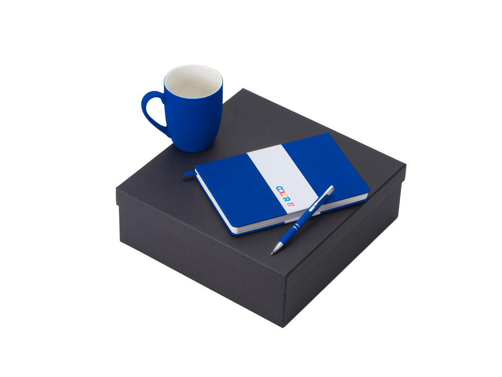 Подарочный набор с блокнотом С3, металлической ручкой и кружкой, синий с логотипом компании - отличный способ заявить вашу корпоративную идентичность.