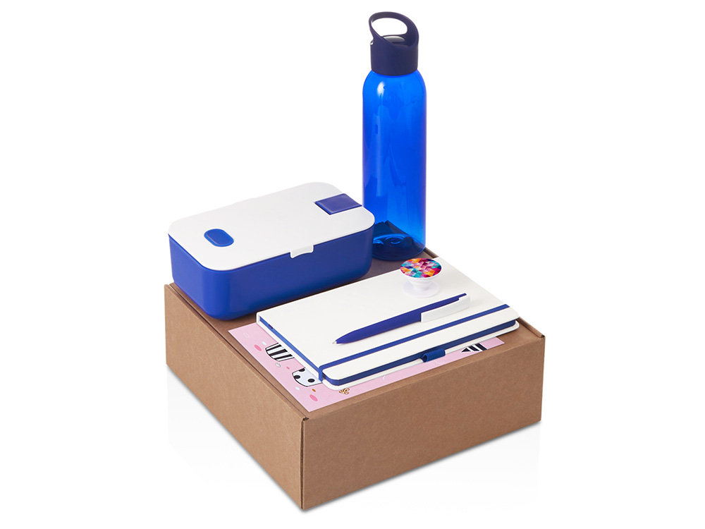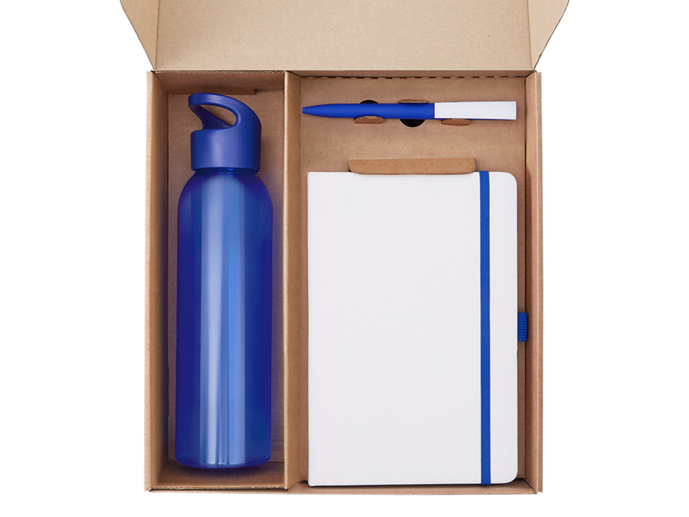 Подарочный набор с бутылкой для воды. блокнотом, ручкой и ланчбоксом,синий с логотипом компании - отличный способ заявить вашу корпоративную идентичность.