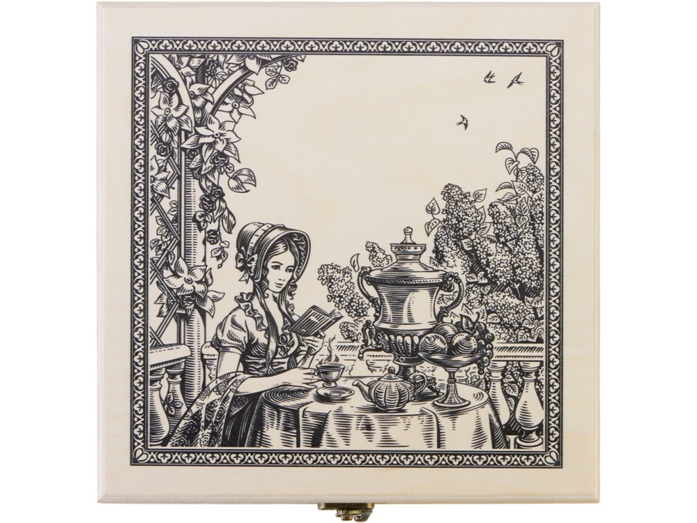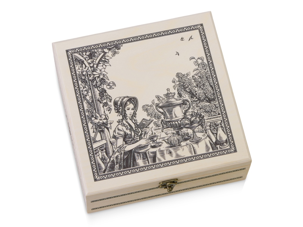 Компания «Эклектика BY» осуществляет нанесение логотипа на сувенирную продукцию: Подарочный набор с чаем Чайный букет в деревянной шкатулке, натуральный. Арт. 431643