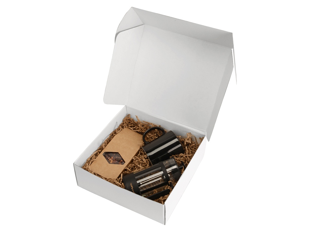 Главная ->Корпоративные подарки и рекламные сувениры на складе -> Товары для кухни -> Чайные и кофейные пары -> Подарочный набор с чаем, кружкой и френч-прессом Чаепитие, черный
