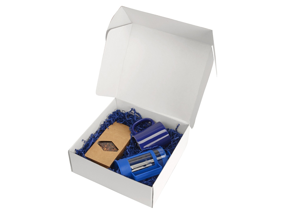 Главная ->Корпоративные подарки и рекламные сувениры на складе -> Товары для кухни -> Чайные и кофейные пары -> Подарочный набор с чаем, кружкой и френч-прессом Чаепитие, синий