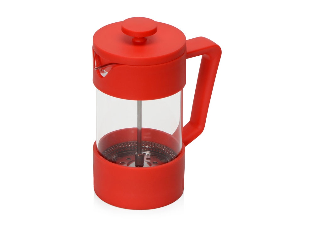Подарочный набор с кофе, кружкой и френч-прессом Бодрое утро, красный с логотипом компании - отличный способ заявить вашу корпоративную идентичность.
