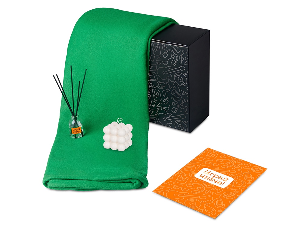 Подарочный набор с пледом, свечой и диффузором, зеленый с логотипом компании - отличный способ заявить вашу корпоративную идентичность.
