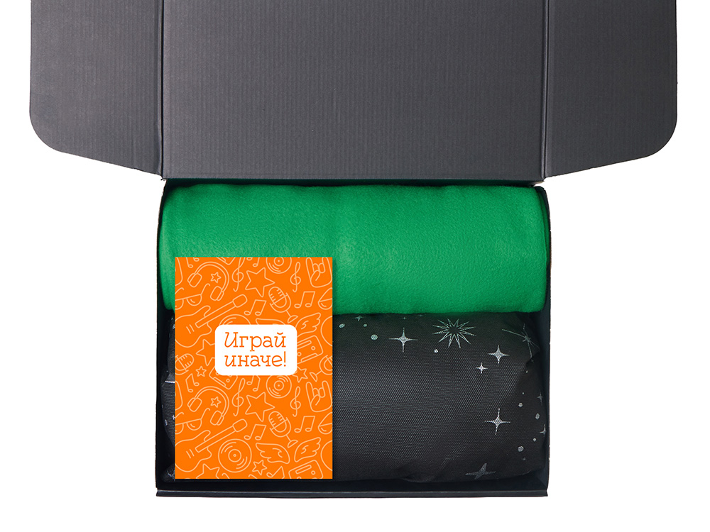 Компания «Эклектика BY» осуществляет нанесение логотипа на сувенирную продукцию: Подарочный набор с пледом, свечой и диффузором, зеленый. Арт. 458471