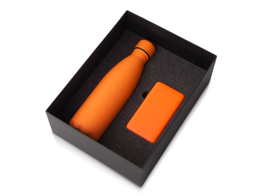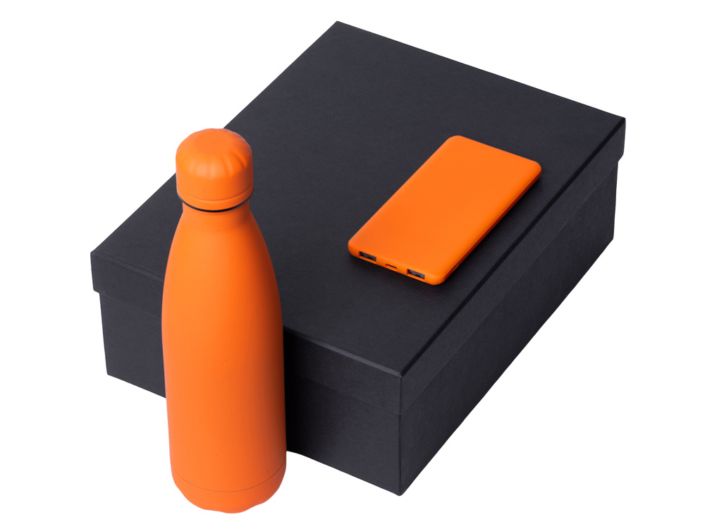 Подарочный набор с термобутылкой и повербанком С1, 5000 mAh, оранжевый с логотипом компании - отличный способ заявить вашу корпоративную идентичность.