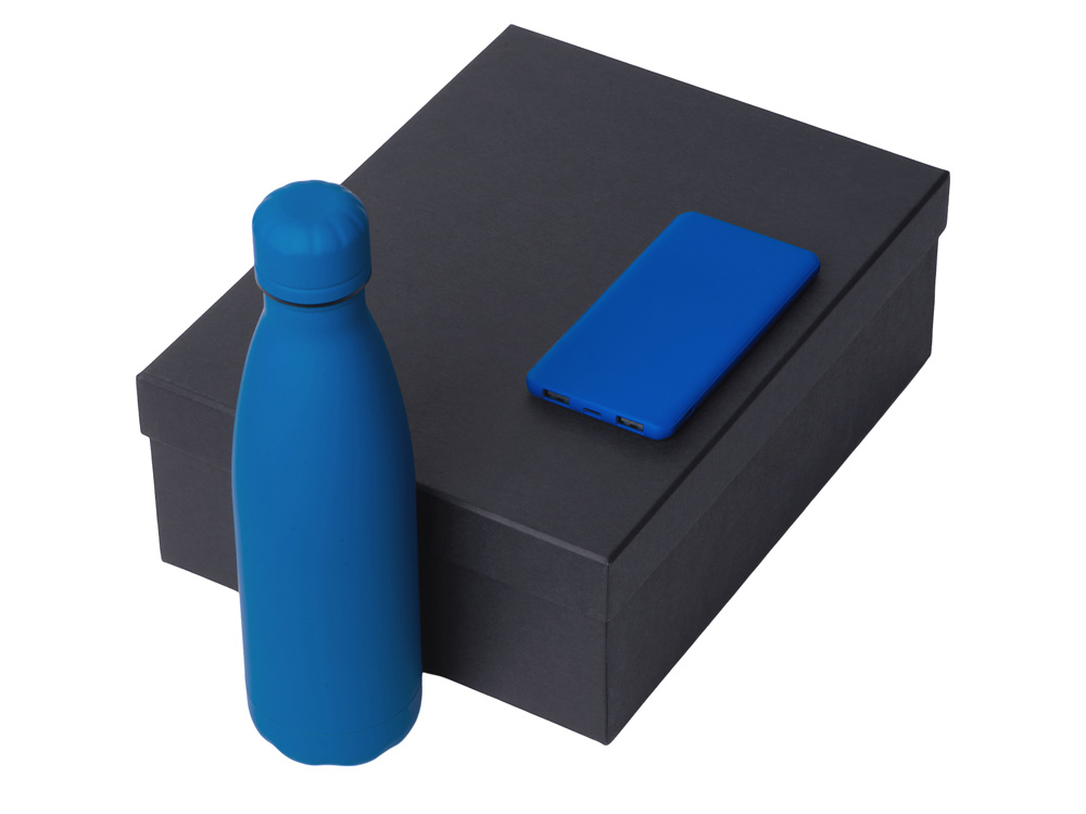 Подарочный набор с термобутылкой и повербанком С1, 5000 mAh, синий с логотипом компании - отличный способ заявить вашу корпоративную идентичность.