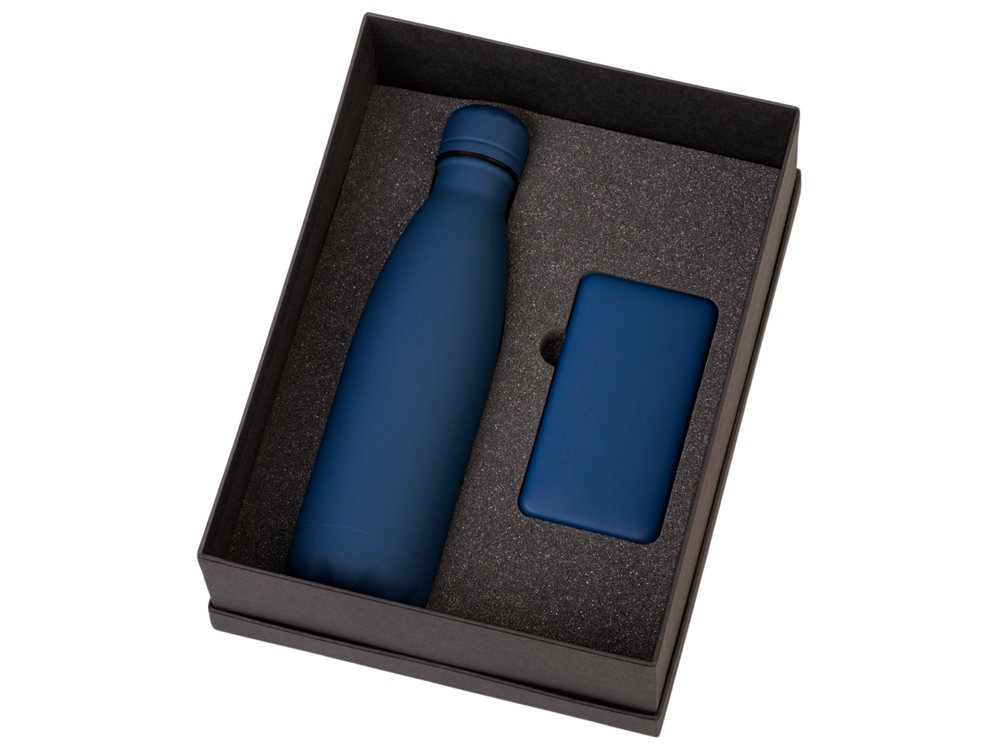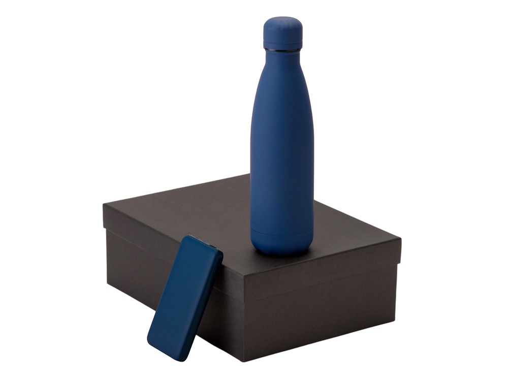 Подарочный набор с термобутылкой и повербанком С2, темно-синий с логотипом компании - отличный способ заявить вашу корпоративную идентичность.