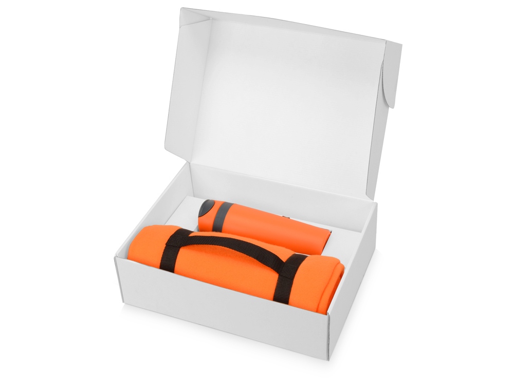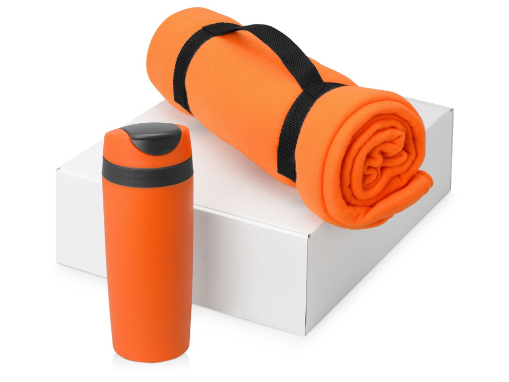 Главная ->Корпоративные подарки и рекламные сувениры на складе -> Термос и бутылка -> Термосы -> Подарочный набор Cozy с пледом и термокружкой, оранжевый