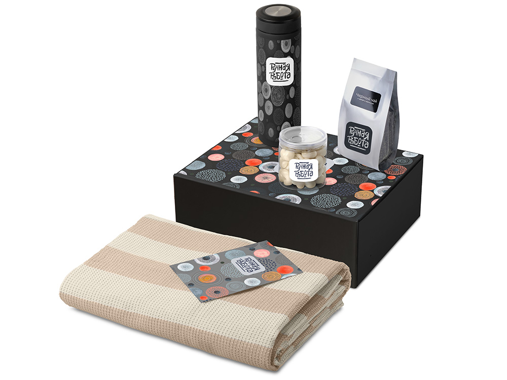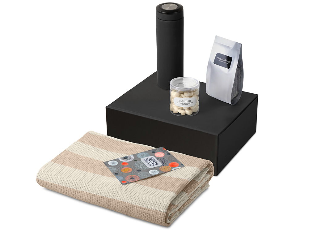 Подарочный набор Re:y. Warm с пледом, термосом и чаем с логотипом компании - отличный способ заявить вашу корпоративную идентичность.