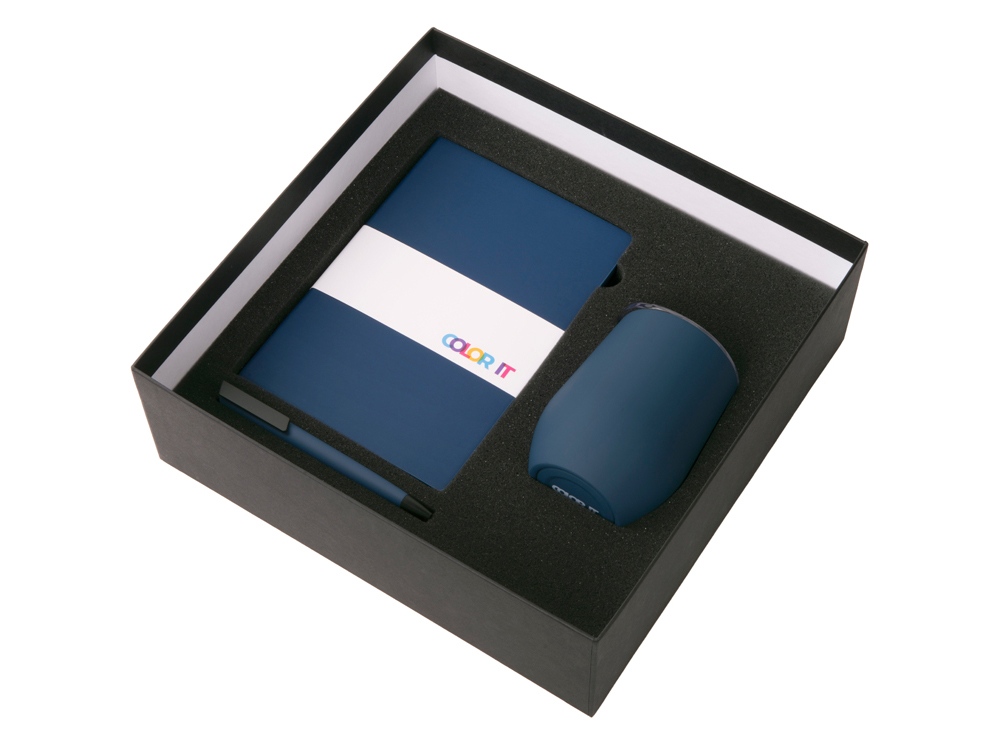 Подарочный набор c блокнотом C2, ручкой и термокружкой, темно-синий с логотипом компании - отличный способ заявить вашу корпоративную идентичность.