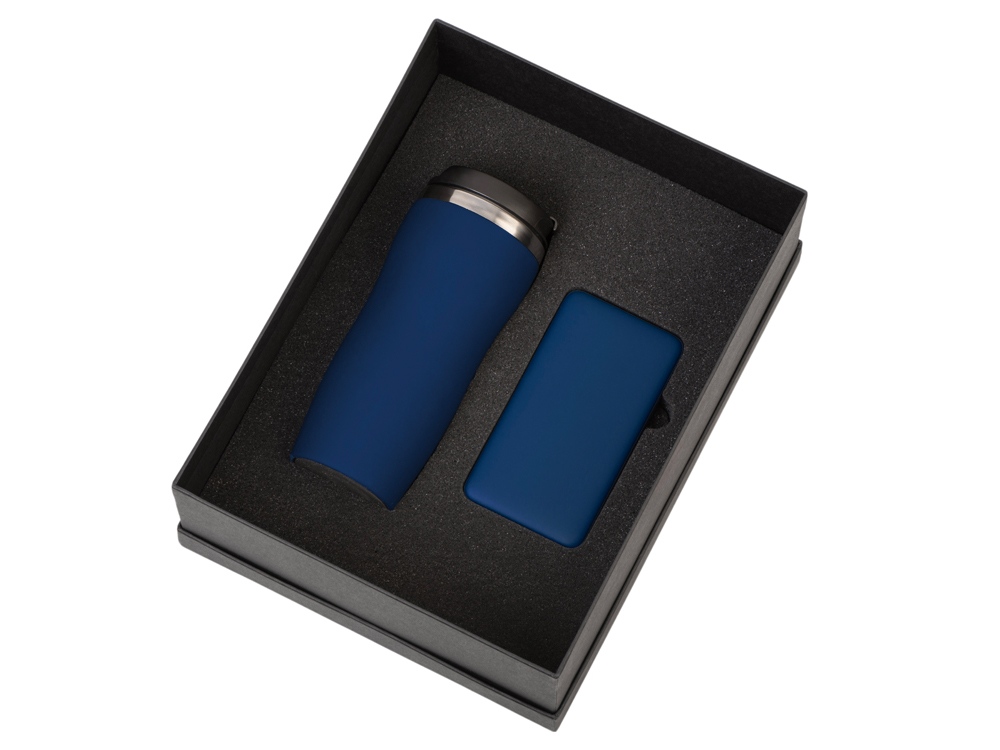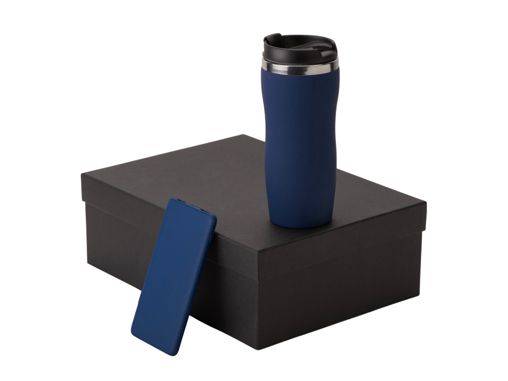 Подарочный набор c вакуумной термокружкой и повербанком С1, темно-синий с логотипом компании - отличный способ заявить вашу корпоративную идентичность.