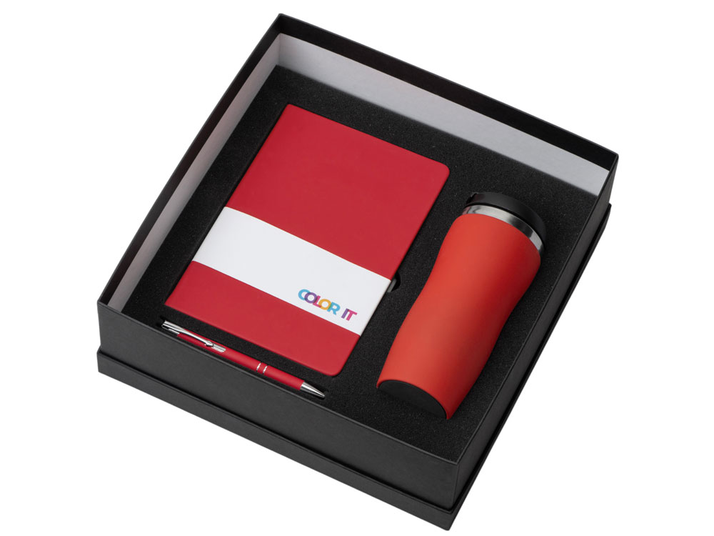 Подарочный набор с блокнотом С1, металлической ручкой и термокружкой, красный с логотипом компании - отличный способ заявить вашу корпоративную идентичность.