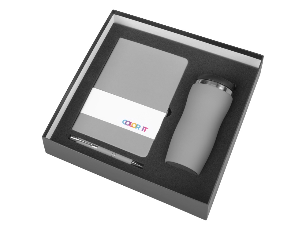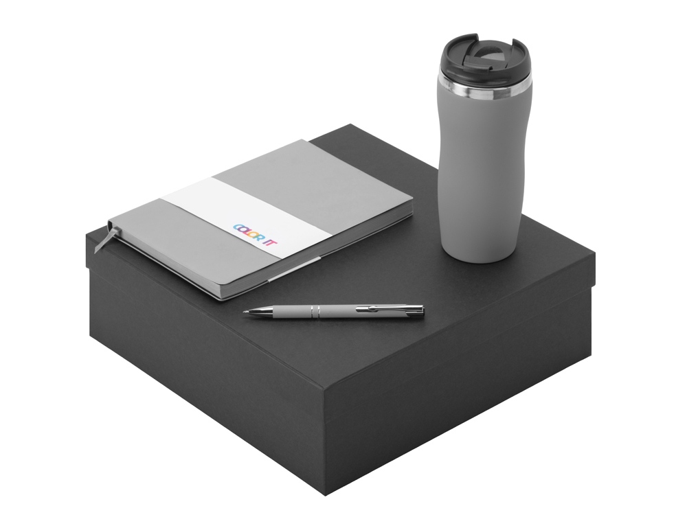 Подарочный набор с блокнотом С1, металлической ручкой и термокружкой, серый с логотипом компании - отличный способ заявить вашу корпоративную идентичность.