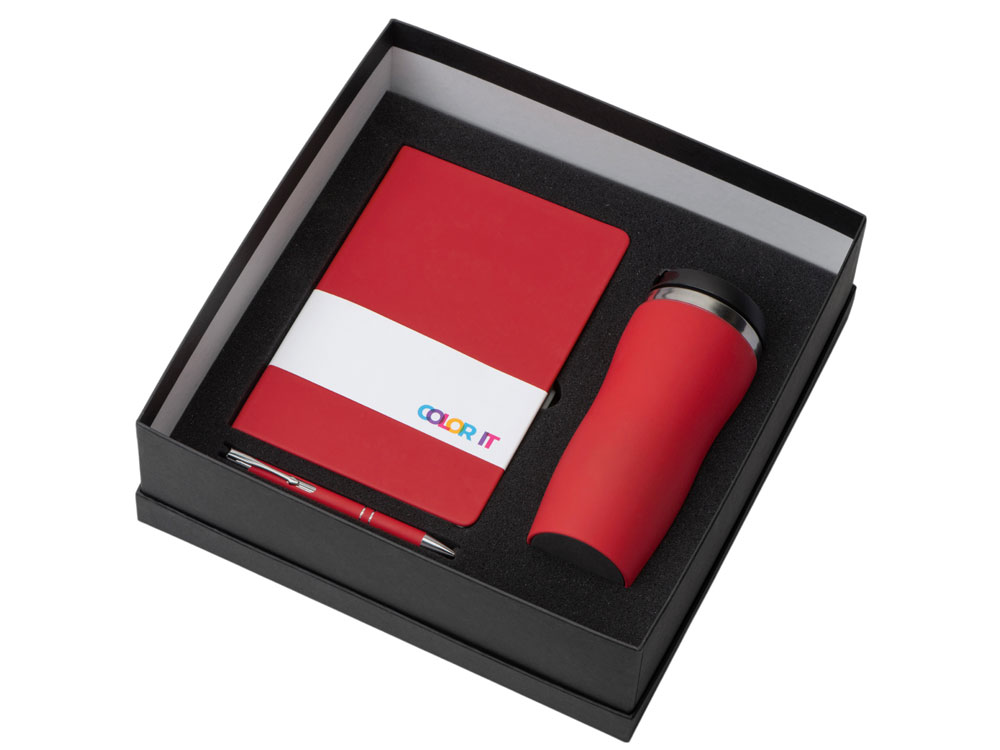Подарочный набор с блокнотом С2, металлической ручкой и термокружкой, красный с логотипом компании - отличный способ заявить вашу корпоративную идентичность.