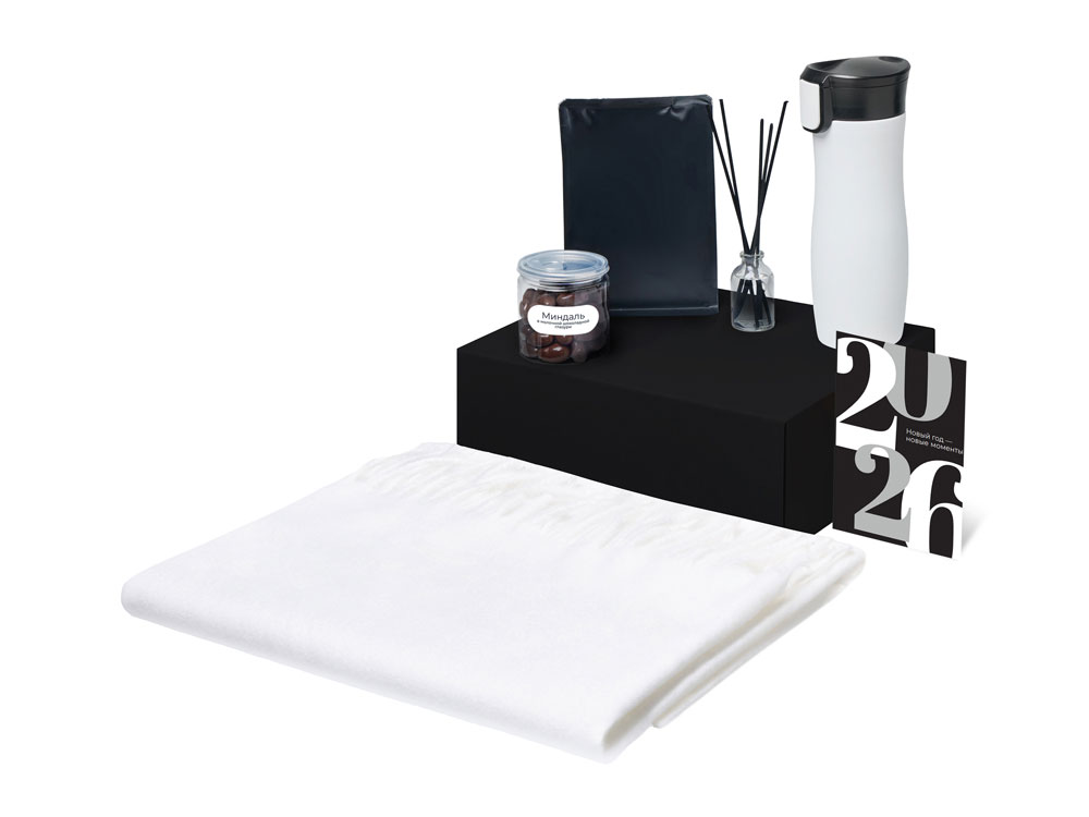 Подарочный набор с палантином и термокружкой, белый с логотипом компании - отличный способ заявить вашу корпоративную идентичность.
