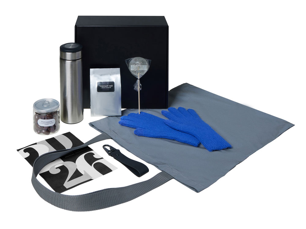 Материал: перчатки - 100% акрил; термос - нержавеющая сталь; ремувка - искусственная кожа, металл; сумка - полиэстер; открытка - бумага; мешок - нетканый материал