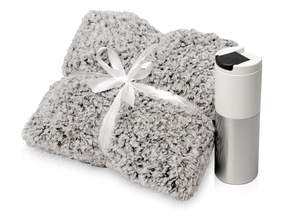 Цвет: плед- бело-черный, термокружка- белый||серебристый