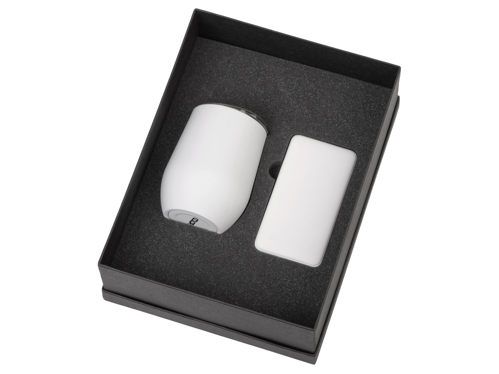 Подарочный набор с термокружкой и повербанком С1, 5000 mAh, белый с логотипом компании - отличный способ заявить вашу корпоративную идентичность.
