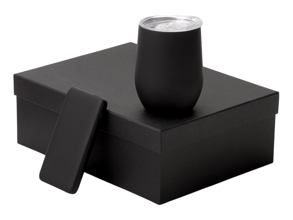 Подарочный набор с термокружкой и повербанком С2, 10000 mAh, черный с логотипом компании - отличный способ заявить вашу корпоративную идентичность.
