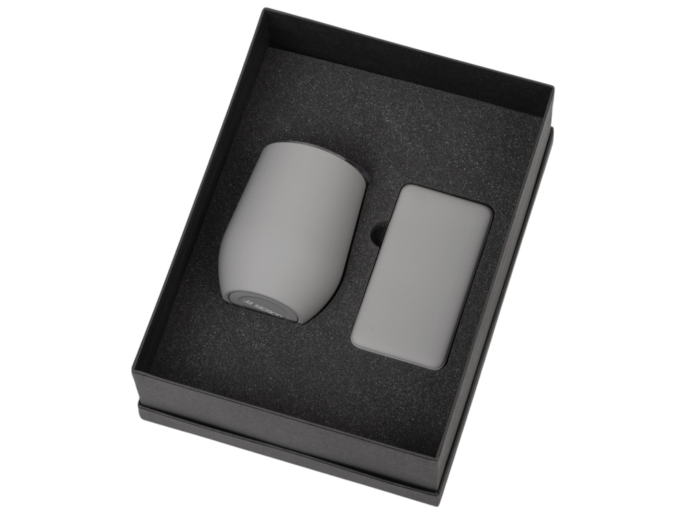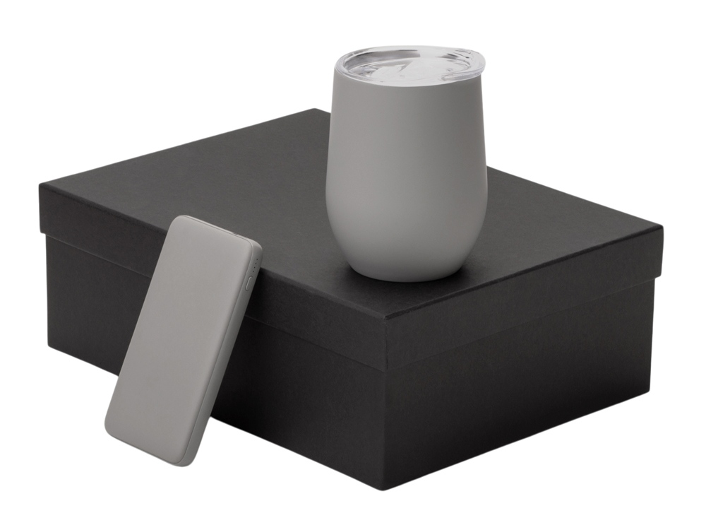 Подарочный набор с термокружкой и повербанком С2, 10000 mAh, серый с логотипом компании - отличный способ заявить вашу корпоративную идентичность.
