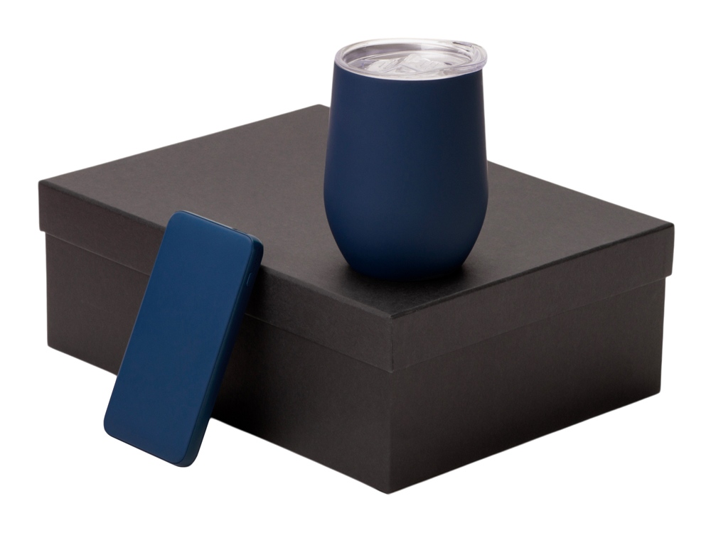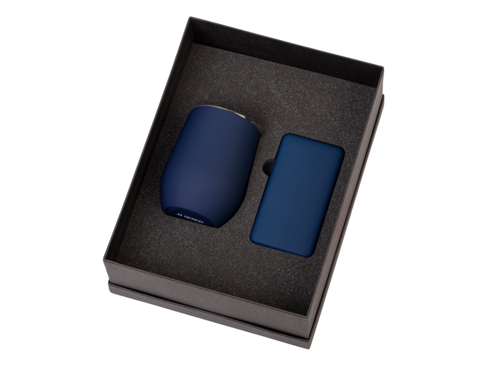 Подарочный набор с термокружкой и повербанком С2, 10000 mAh, темно-синий с логотипом компании - отличный способ заявить вашу корпоративную идентичность.
