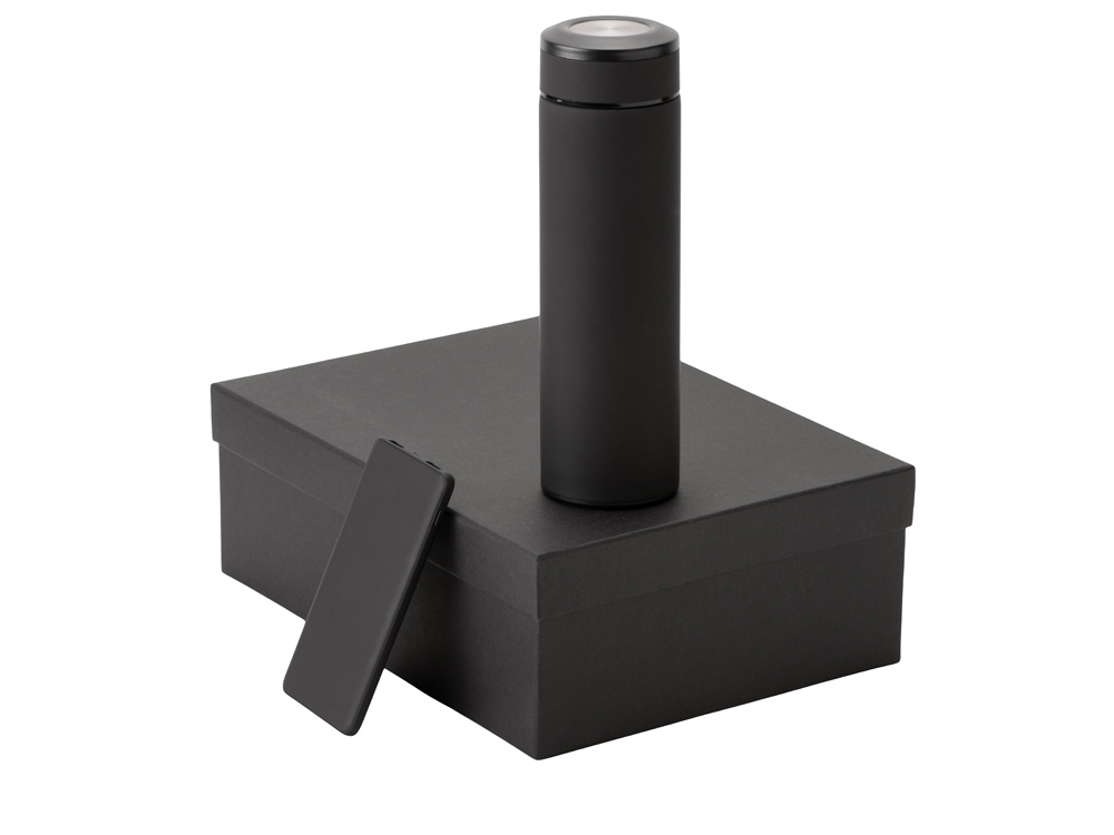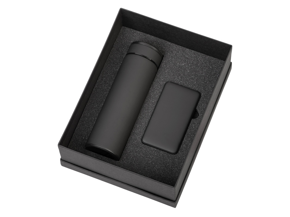 Подарочный набор с термосом и повербанком С1, черный с логотипом компании - отличный способ заявить вашу корпоративную идентичность.
