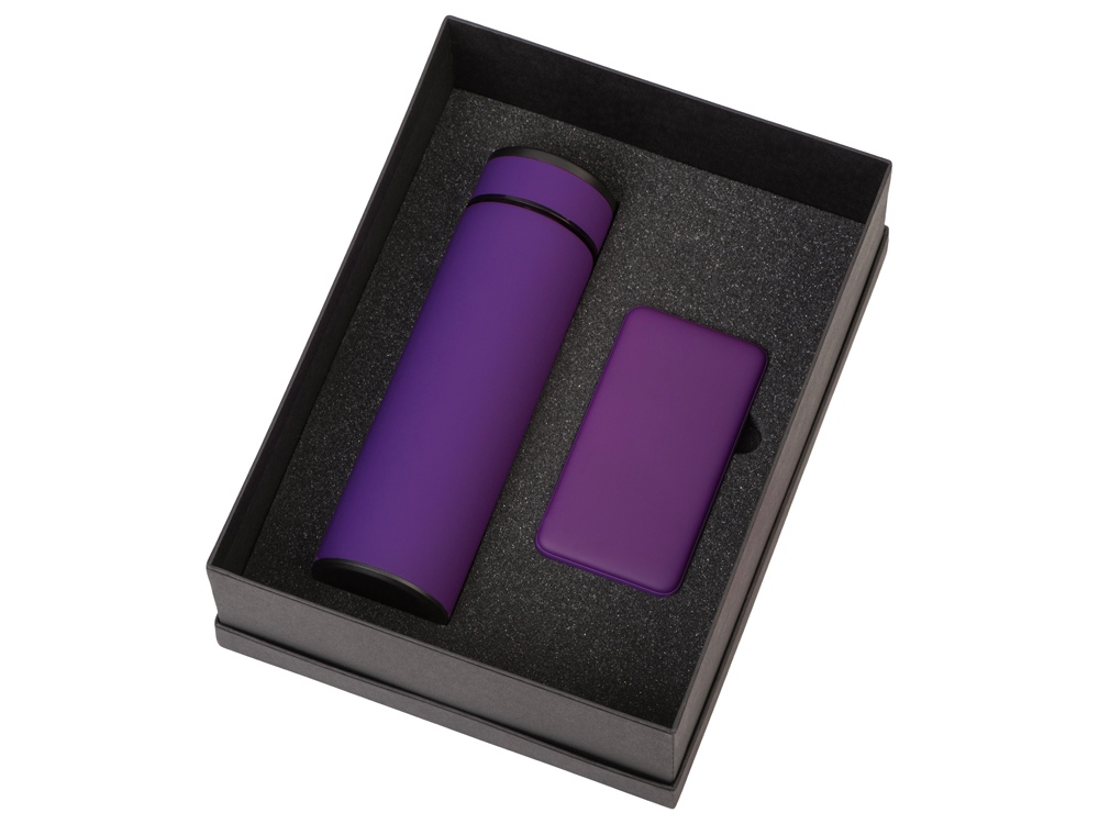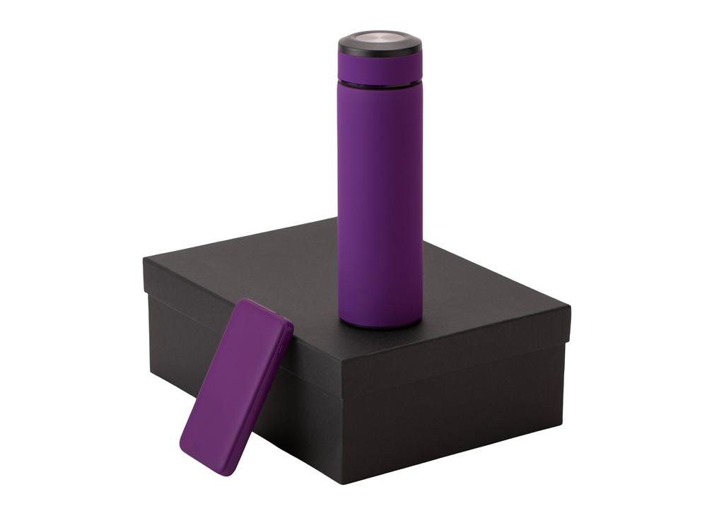 Подарочный набор с термосом и повербанком С2, фиолетовый с логотипом компании - отличный способ заявить вашу корпоративную идентичность.