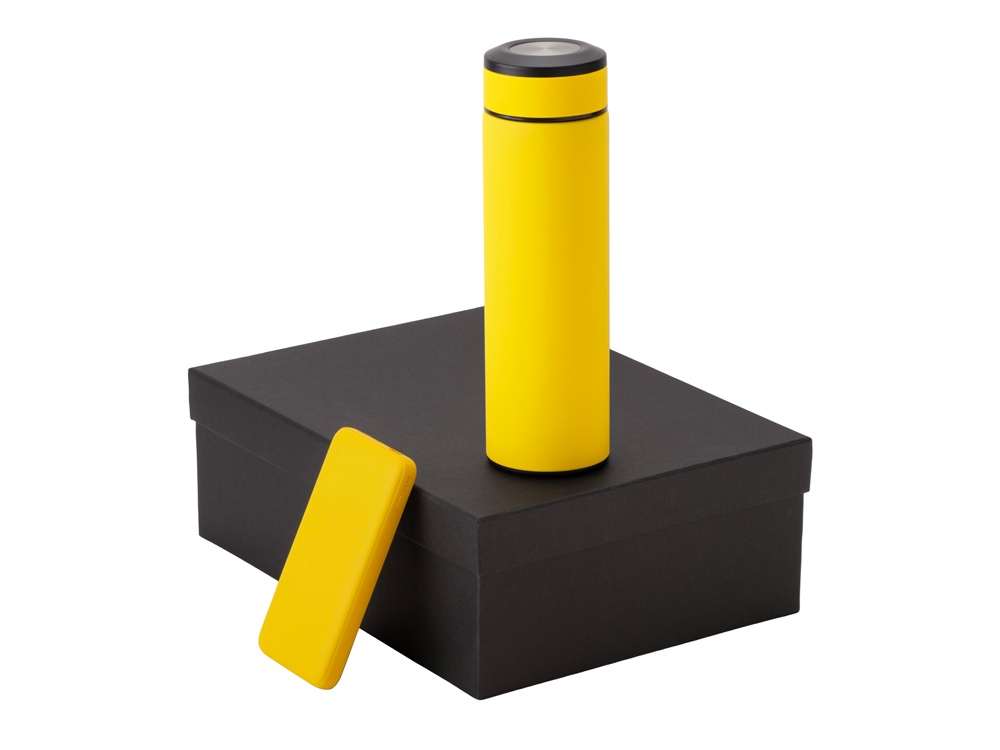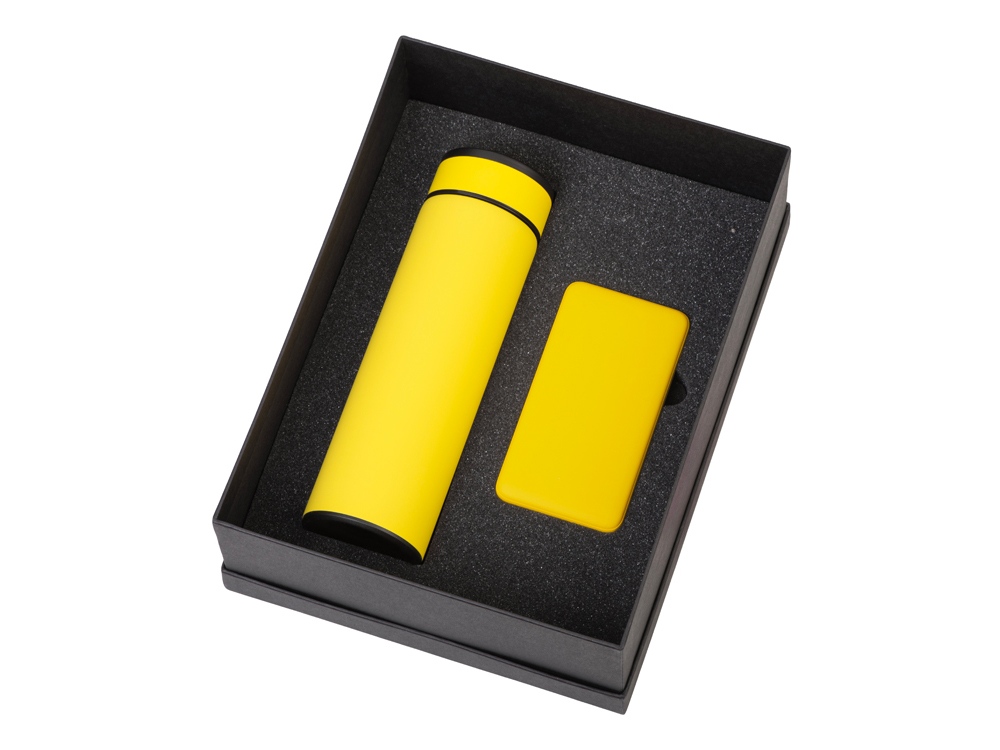 Подарочный набор с термосом и повербанком С2, желтый с логотипом компании - отличный способ заявить вашу корпоративную идентичность.