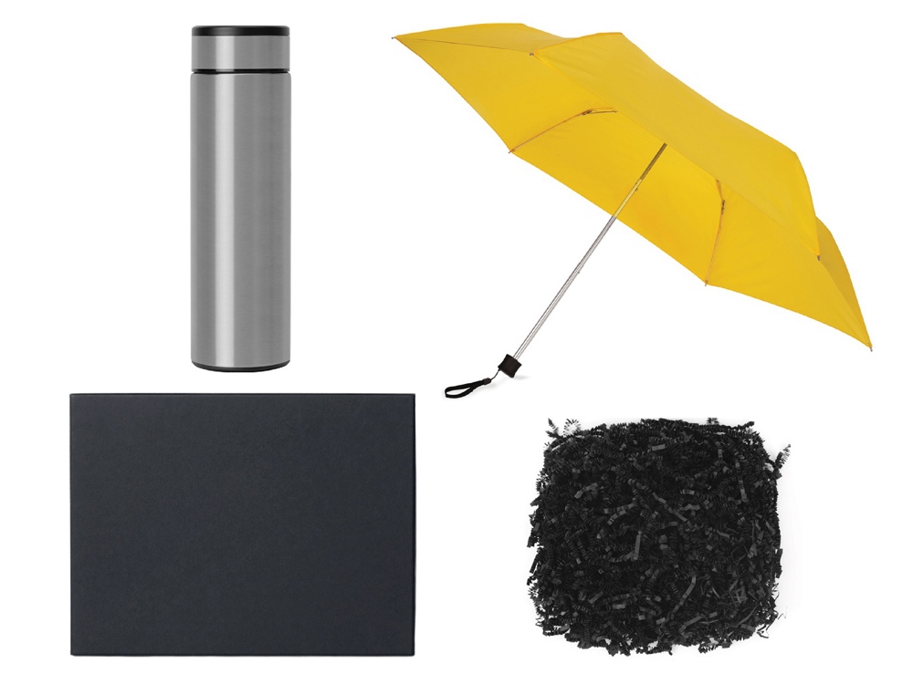 Подарочный набор с зонтом и термосом, желтый с логотипом компании - отличный способ заявить вашу корпоративную идентичность.