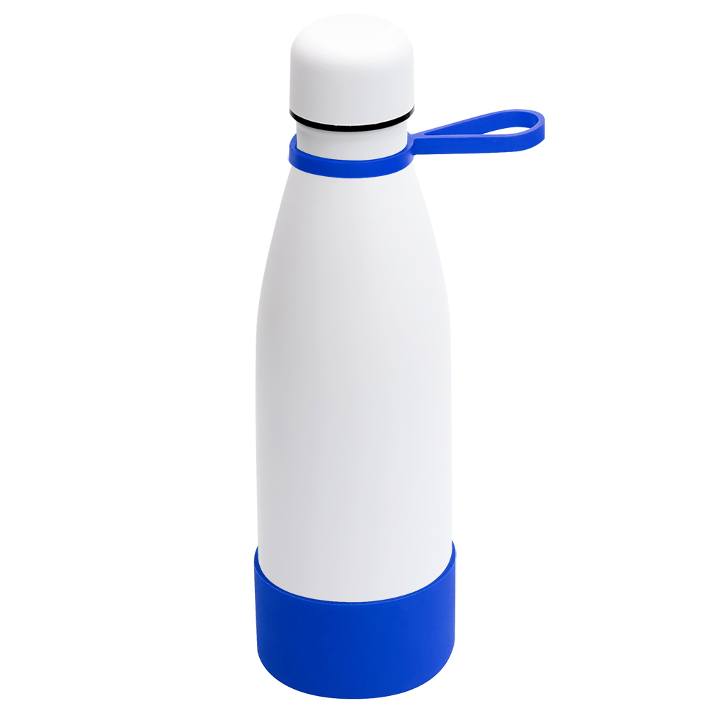 Вакуумная термобутылка Olivia, белый - артикул 5050.01, кольцо-держатель - синий; манжета - синий
