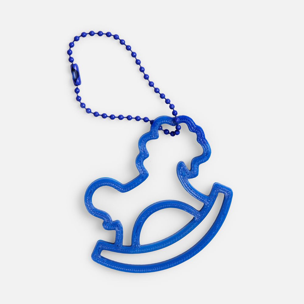 Главная ->Корпоративные подарки и рекламные сувениры на складе -> Брелоки с логотипом -> Брелоки -> Подвеска «Лошадка-качалка», 3D-печать, синяя